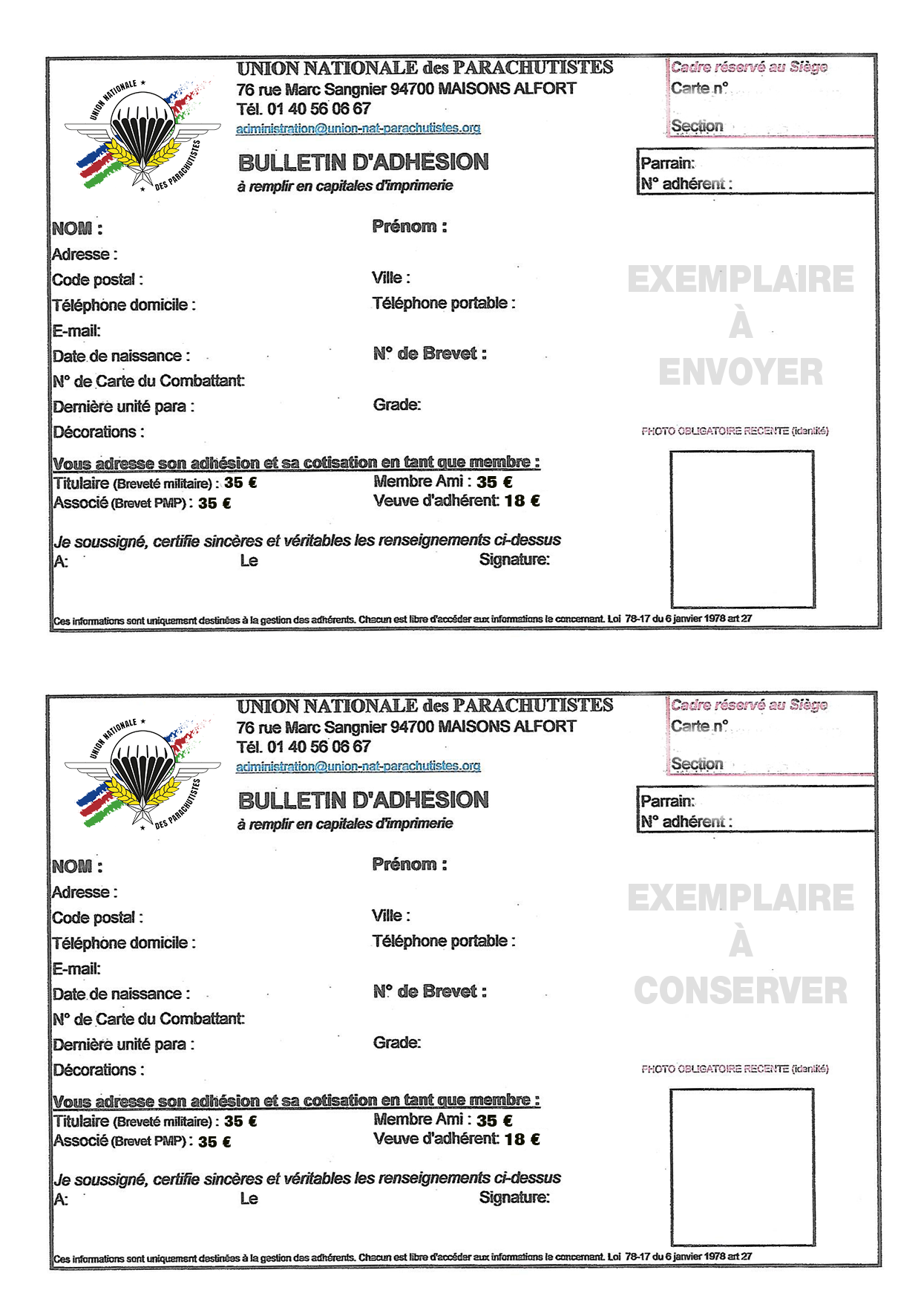 et l'envoyer avec une photo accompagné d’un chèque de 35 €